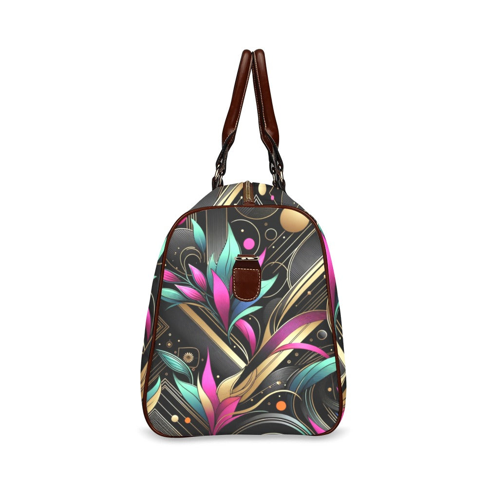Golden Bloom Luxe Waterproof Duffel Bag – Elegance in Motion
