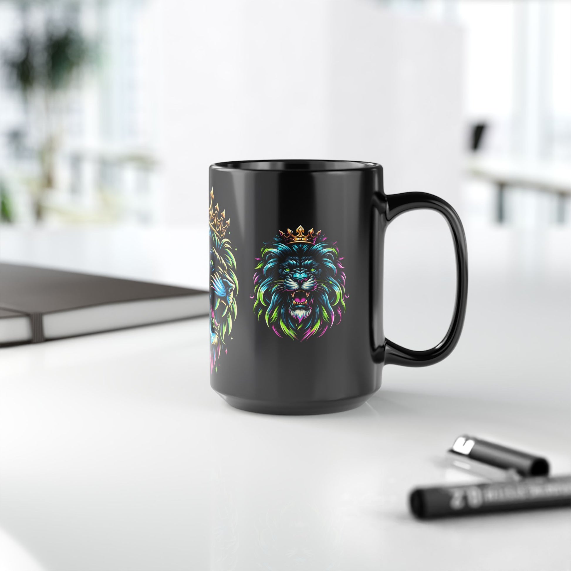 Neon Crowned Lion Mug – Bold Sip for a Bold King (11oz or 15oz Black Mug)