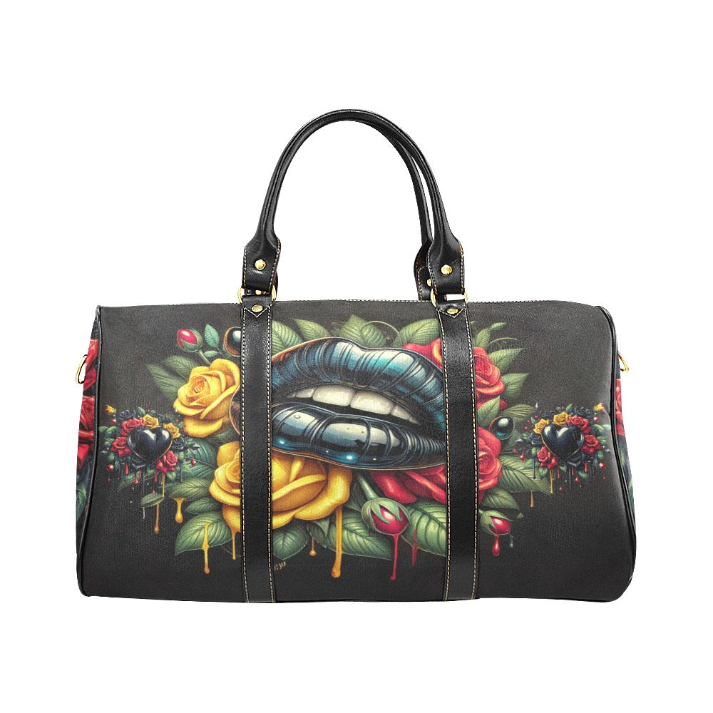 Add a bold statement piece to your travel collection with this Rose Lips Hearts Duffel Bag that combines art and functionality effortlessly. Absolutely beautiful!