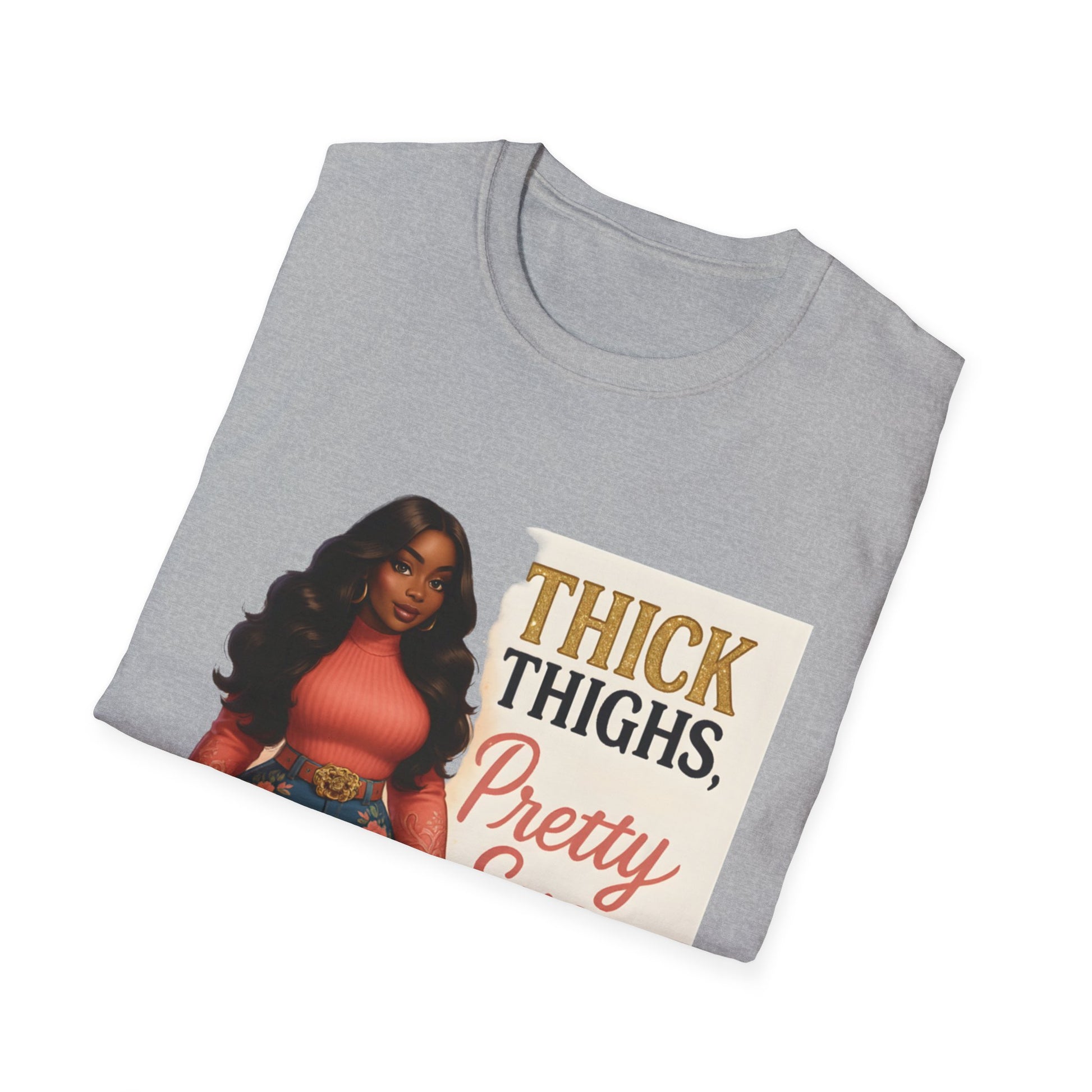 Thick Thighs, Pretty Eyes Graphic T-Shirt – Women's Motivational Tee