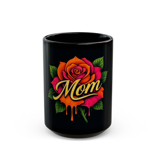Bold Rose MOM Mug – Black Ceramic with Tattoo-Inspired Art | 11oz or 15oz