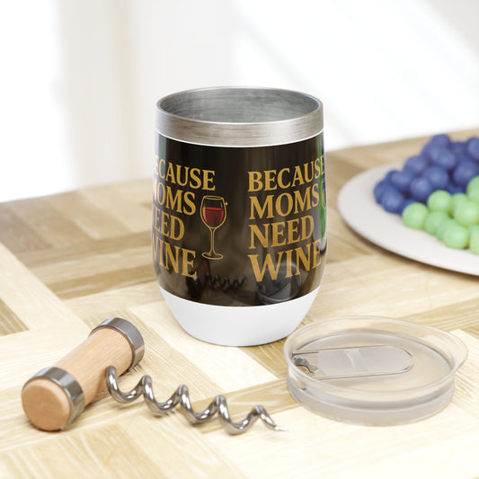 Because Moms Need Wine - 12oz Insulated Stainless Steel Wine Tumbler with Lid