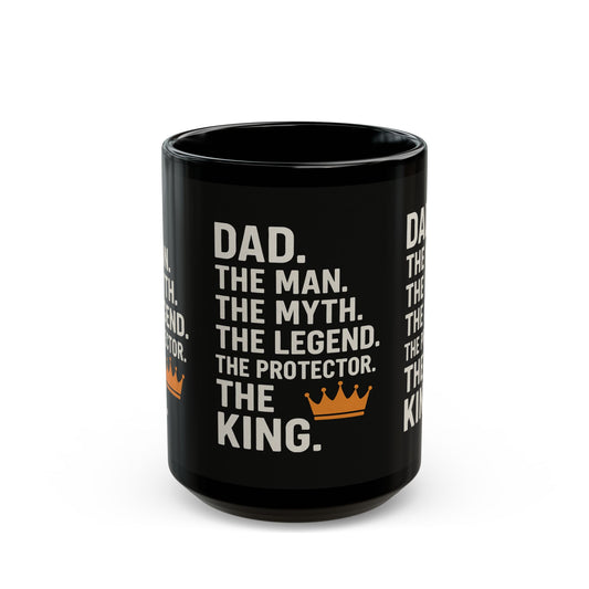 Dad. The King. Mug – The Man. The Myth. The Legend. The Protector. (Black Ceramic 11oz or 15oz)